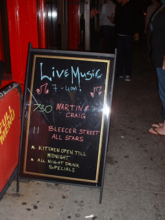 本日のお目当ては、The Red Lionで行われる23時からのライブ。Bleecker street all starsというバンド。(あれ?看板の綴り間違ってるよ。)
