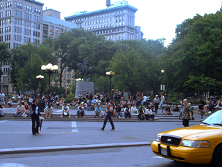 それにしても、いつも時間に追われてせかせかしている日本人から見ると、とくに何があるわけでもない広場に人がこれだけ集まって(しかも暑いって!)のんびりしている光景って、なかなか理解しがたいものがあります。(^^;)