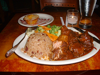 1プレート料理で、チキンのブラウンシチューと、豆ご飯と、野菜のなんちゃら(忘れた)を注文(してもらう)。