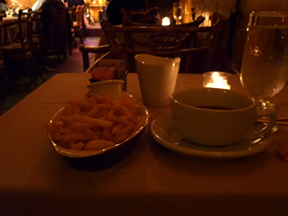 最初は空席だらけでしたが、徐々に混んできました。テーブル席だったので、フリーコンサートと言えども$10くらいは飲食したほうがいいんだろうなと思い、カフェオレとフライドポテトを注文。