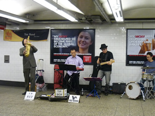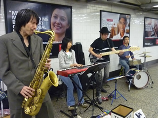 すぐ近くにホームがあって、電車が到着すると人の往来が激しくなったりする通路だったので、34St.-Penn Stationのように人だかりができたりはせず、落ち着いて聴くのは難しそうでしたが、少しの間立ち止まって聴いていく人や、踊りながら通過して行く人もいました。