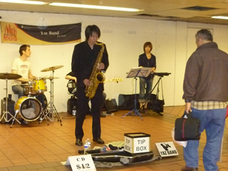 やはり3年前とはガラリとメンバーも変わっていて、メインのベーシストがてつやさんになり、パーカッション、トロンボーン、ギター、バイオリン、ボーカル2人(そのうちの1人は2008年と2009年に会ってるJoe、もう1人は日本人女性でした)、タップダンス(これまた日本人女性)に、おそらく飛入り組のChucky(サックス)。