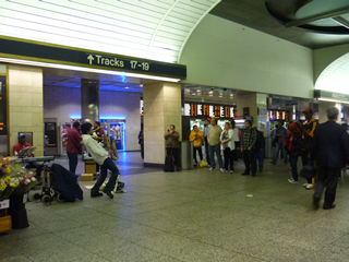 帰りもBleecker St.駅から帰ってみようと思い、いつもと逆方向へ。アップタウン行きの駅の入口は離れた場所にあることはわかってたんですが、それがどうしてもみつからず。仕方なく下りのホームからつながってるBroadway-Lafayette St.駅へ、つまりそれはB・D・F・Mライン。