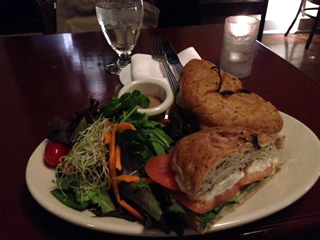 1ステージの間にご飯を済ませちゃおうと思い、サンドイッチを注文。つけあわせはフレンチフライではなく、サラダを。