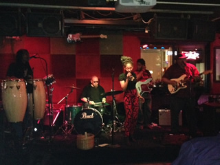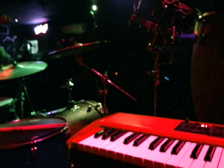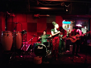 すごい混雑だったのもあり、私は舞台脇の、よくミュージシャン達が座ってるテーブル席に1人で座っておりました。日本人2人はステージに上がっちゃってたし。