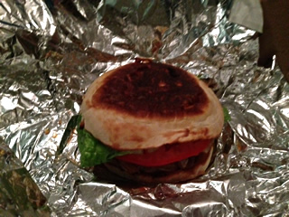 仕方なく帰宅する途中、近所のおいしいハンバーガー屋さんでターキーバーガー買って帰りました。