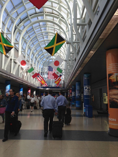 今回も往きがシカゴ経由で乗り継ぎ。久々のAAです。カウンターで荷物を預ける際、荷物に指定のタグをつけろとか、スーツケースの鍵はかけるなとか、宿泊場所の住所を今教えてくれとか、なんか以前より細かくなってました。