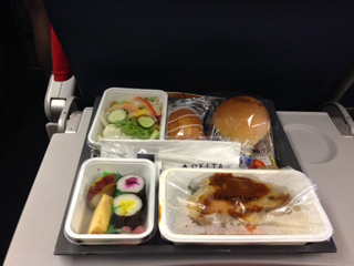 今回乗ったデルタは、各座席でスマホの充電ができるようになってました。素晴らしい。