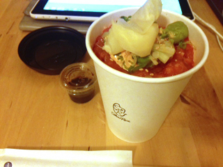 昨年と同じですがスパイシーサーモンのカップ寿司をテイクアウト。体調が良くない時はやはり日本食が落ち着きますね。