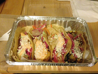 昨年買った時、1つのサイズがちっちゃかったのを覚えてたので、ローストベジタブルとグリルチキンの2種類を1つずつ頼んだつもりだったのですが、チキンはなぜかフライドシュリンプに変わっちゃってるし、同じのが3つも。何をどう聞き間違えられたのやら。