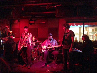 演奏後、そのビデオ撮ってくれたお客さんを含め、何人かに声かけられたんですが、中でもおもしろかったのが、内田裕也みたいな(見た目も言動も)アメリカ人のおじさんが近づいてきて。