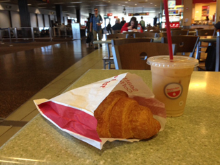 ようやくお腹もすいてきたので、クロワッサンとアイスティーで朝食。