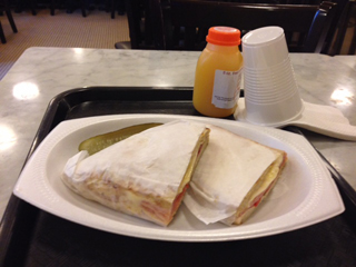 オーダーしたのはパニーニ。なるべく量の少なそうなメニューを選んだんですが、同じの2切れは結構ボリュームあります。飽きるし。ジュースはちょうどいいサイズのがありました。