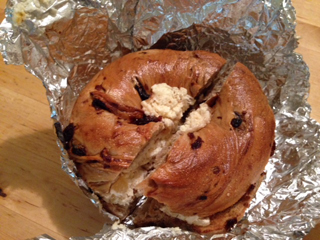 昨日みどりさんからいただいたベーグルの半分を朝食に。