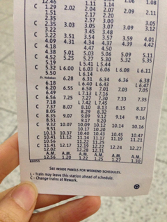 いくつかホームを行き来してニューヨーク行きを探したんですが見当たらず、前を歩いていたご婦人に声をかけて該当の時刻表を教えてもらったんですが。