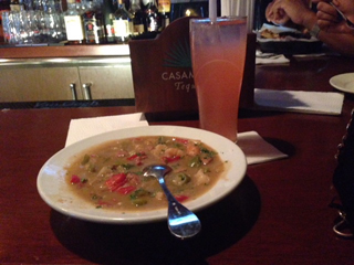 お腹がすいていたので、とりあえずガンボとピンクレモネードを注文。