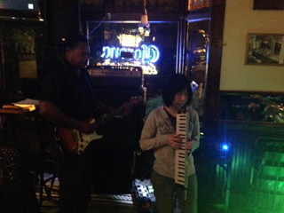 今日はPaulさんは病気で来られないと聞かされていましたが、Toniaが「久美子が来ている」と電話したらしく、1ステの途中でベース持ってご登場。サプライズでした。