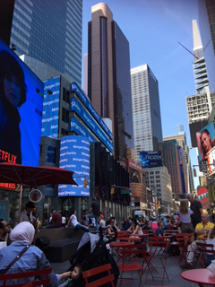 Yazさんはこの後もう1つ仕事があるらしく、私もこの後はJamaica(Yazさんにとってもなつかしの)に行くってことで、それまでの間、タイムズスクエアでそのままお茶しました。機材移動が大変なので。
