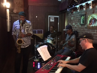 本日のミュージシャン、鍵盤は今回もNormさん、ベースは初めてお会いするDavidさん、あと昨年も来てたサックスのRonさんと、しんやさんの奥さんLynneさんも来てました(歌聴けなかったけど)。