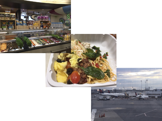 チェックインが終わって荷物預けてもまだまだ時間があるので、2年前も同じことしましたが量り売りのお惣菜を買って朝食に。